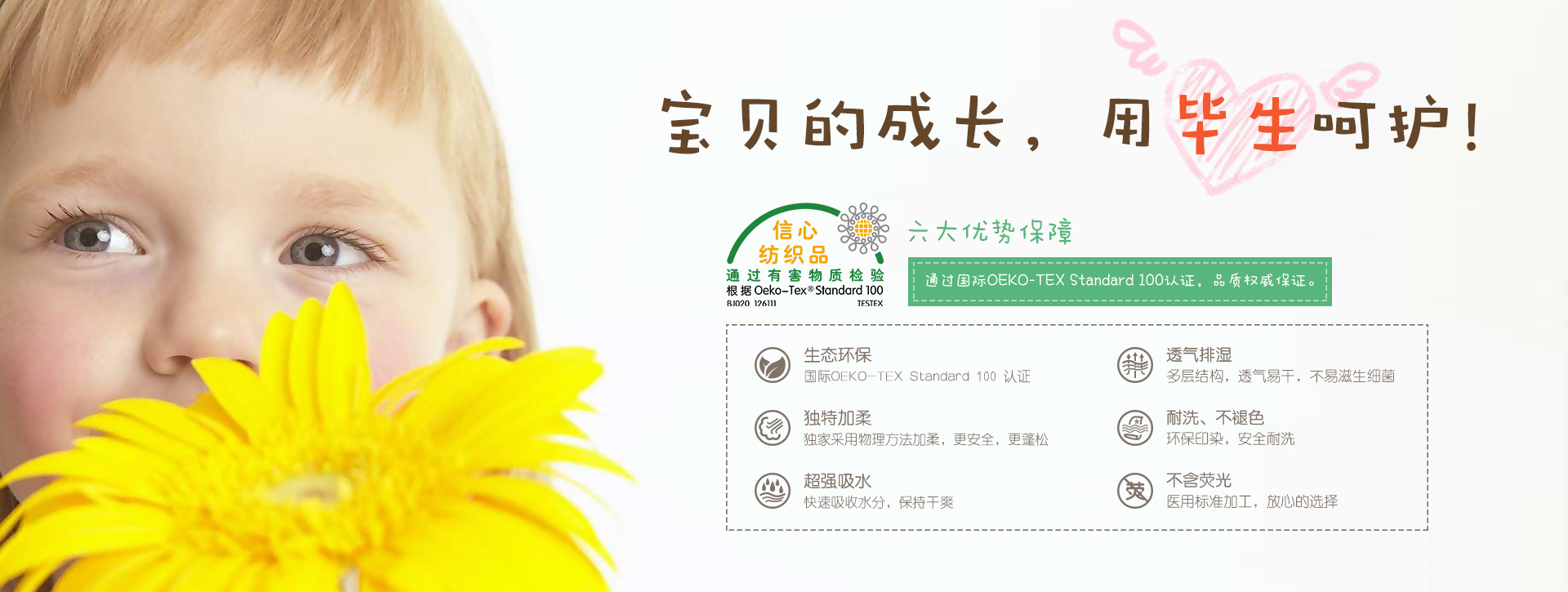 公司共投資6000多萬元人民幣,占地30畝,有260多名員工,有織布、織帶、漂煉、染色、縫紉、數(shù)碼印花六個車間,廠房建筑面積約16000平方米。主要生產(chǎn)嬰兒紡織品(OEKO-TEX, Standard100中的Ⅰ類產(chǎn)品)及繃帶(ISO13485中的Ⅰ類產(chǎn)品)。產(chǎn)品主要銷往德國、奧地利、法國、荷蘭、土耳其、日本、馬來西亞、菲律賓、新加坡、智利、安哥拉美國、加拿大及中國內(nèi)地,擁有環(huán)球影城、AEON等知名品牌的生產(chǎn)授權(quán),并通過了BV、TUV、SMTA等公司的社會責任驗廠;取得了AEON質(zhì)量管理認證和OEKO-TEX Standard100的證書(BJ020126111 TESTEX),是一批國際國內(nèi)知名品牌的代工企業(yè),如:西松屋、noukies、KUB、好孩子、英氏、巴拉巴拉等。